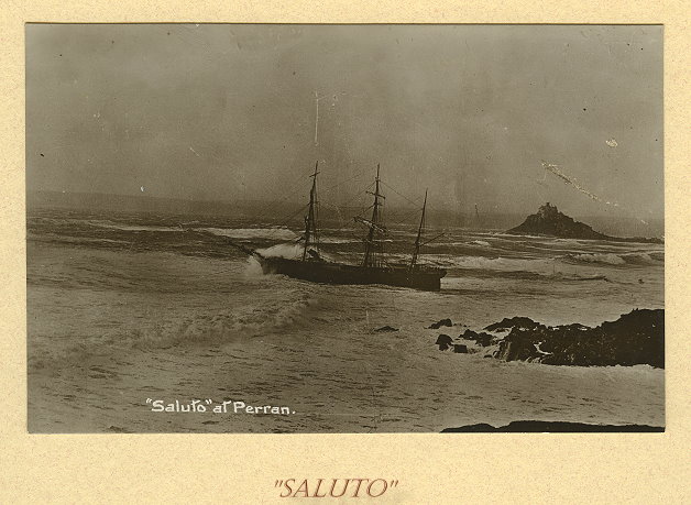 Watched by hundreds of spectators, the Norwegian Barque Saluto was driven ashore close to St. Michael’s Mount on Wednesday morning, and it is likely to become a total wreck. In the teeth of one of the worst gales for a quarter of a century, the crew of thirteen all told were taken off by the Newlyn Lifeboat Elizabeth and Blanche and safely landed at that port amid scenes of great enthusiasm. The Saluto is an iron Barque and hails from Christiansund. She was commanded by Captain Olsen, and carried a crew of thirteen. She was bound from London to the West Indies in ballast. She left the Thames on November 23rd, but experienced bad weather. On Friday last, when in the Bay of Biscay, the vessel sprang a leak and matters rapidly worked towards a crisis. The water mixed with the ballast and thus choked the pumps. The leak was discovered forward on the starboard side, but despite all the efforts of the crew- who tried to plug it with a sail, white lead etc.- it was found impossible to stop it and with the pumps choked, the water rapidly rose in the hold. With the weather continuing bad, the captain recognised the danger of proceeding on his voyage and on Monday he determined to make for Falmouth. Under light sail the Saluto was in the vicinity of the Lizard on Tuesday night, but the wind then increased in velocity and it was found impossible to round the headland. The wind also changed its direction, and the Saluto was driven towards the centre of the Bay. The crew could do nothing more. The signal of distress was hoisted, and they waited patiently for help from the shore. It was in this state that the Barque was observed from Mousehole at about 9.30 on Wednesday morning. The intelligence was immediately sent to Newlyn and at 9.45 the lifeboat crew was summoned by rocket. With commendable foresight the Elizabeth and Blanche had been kept afloat, and in a few minutes Coxswain T.E.Vingoe and his crew were proceeding out of the Harbour to the rescue of the doomed ship. Some three or four of the lifeboat’s regular crew were away from Newlyn on fishing duty, but there was no difficulty in obtaining volunteers. The report of the rocket attracted to the harbour and to the sea front at Penzance a big crowd of interested spectators, who watched with intense excitement the subsequent proceedings. At the time the lifeboat left the harbour one of the fiercest gales on record in the Bay was raging from the S.W., and huge seas were running. The distressed vessel was three or four miles to the South-Eastward of Mousehole, and was rapidly drifting in the direction of Cudden. Under sails the lifeboat put out, her progress being followed with no little anxiety. At one moment she would be sent to the crest of a big wave, and the next she would be lost from view in the trough of the sea. There was no faltering and steadily and quickly she reduced the distance between herself and the Barque. Those on board the latter had observed the lifeboat’s approach, and had let go both anchors, but so violent was the gale and so great the seas that one of her cables snapped and the remaining anchor failed to hold the vessel. What actually was happening when the lifeboat had drawn alongside the Barque could not be followed by those on shore, as the vessel had reached within a couple of miles of Cudden, and vision was also obstructed by the heavy rain squalls which frequently swept over the Bay, blotting out even the Barque itself. After the lapse of a short time, however, the lifeboat was seen coming away from the Barque, and as she neared the land it was seen that her human freight had been considerably augmented. Sailing splendidly she quickly reached Newlyn where a tremendous ovation was accorded her plucky crew. The sirens of all the steam craft gave vent to a triumphant peon, and the throngs on the wharfs waved their hats and shouted enthusiastically. And let it be said the plucky lifeboat- men deserved the praise which was bestowed upon them, for on all hands it is admitted it was one of the smartest rescues ever effected in the Bay. So smartly had the whole affair been carried out that not more than an hour and a half had elapsed from the time the lifeboat left the harbour till the return with the whole of the crew of thirteen of the Saluto. This is the newspaper account of what happened with the "Saluto" rescue. I have been able to add the name of another crew member on that day, William Kliskey age 17. His father joined the crew of the "Elizabeth and Blanche" lifeboat when it was first stationed at Newlyn in 1909. On the morning of the 11 December 1911 he was working on the old coal hulk "Crete" moored in the middle of Newlyn harbour. This supplied the Lowestoft steam drifters with fuel but on this day her hawsers kept breaking loose and she was in danger of parting from her hawsers which secured her in position. Thanks to a younger son, Alfred J. Kliskey born 1906, I have some idea as to my grandfathers thoughts on that eventful day. Alfred Kliskey's biography written 1980 "A Newlyn Towner" recalls his brothers part in the drama. It obviously made a lasting impression on him and I am grateful that he committed his and his brother's recollections to print. He records that comments were passed that the lifeboat would never get out of the harbour if needed as the sea was breaking over the green. When the rocket went up his brother William realised that their father was stuck on the coal hulk and that the lifeboat may be short of crew as many of the fleet were still out on the fishing grounds. Although still young William was a fisherman of some years standing having been asked to join Capn' Blewett's boat when he was a hand short and found the life to his liking. Alfred's account of the day of the rescue states- He ran to Coxswain Vingoe, realizing this and asked "can I take father's jacket? " Cox'n Vingoe answered "You're too young to go in a lifeboat in weather like this" "I go to sea" William replied. The Coxs'n