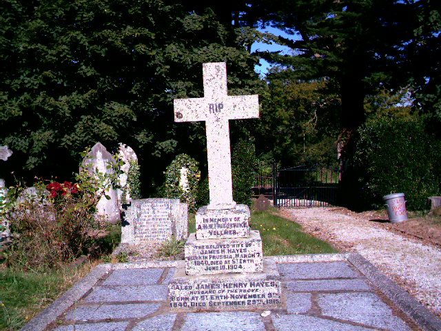In 1841 Emley is at home aged 14. In 1851 she is at home, aged 23 and an Ag Lab Had a son called Thomas on 18 JAN 1850. Father reported to be Thomas Hore. He was christened in St Erth on 6 MAY 1869. In 1851 Thomas is at home aged 1 In 1871 Thomas is aged 21 and a Blacksmith. He is living with his grandfather James Hayes in St Erth. Thomas married Mary Bray on 21 AUG 1875 in St Erth Emily married Benjamin Richards in the SEP quarter 1853 (Redruth 5c 460) Emily and Benjamin had a son called Charles Richards in 1854 Emily was buried on 24 MAR 1867 in St Erth aged 40 In 1871 Charles Richards is aged 17 and a Mason. He is living with his grandfather James Hayes in St Erth |
