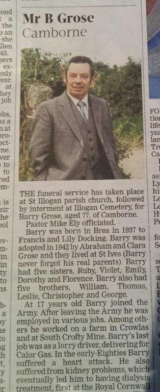 | Kathleen Grose | 22 AUG 1942 | Adopted by Clara and Abraham Married Robert Osborne. They live in St Ives and have four children: Mark, Paul, Melissa and Tara. |
