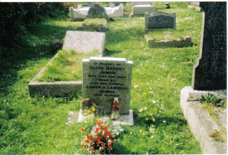 (In 1901 James is 28 and a General Farm Labourer. Lemeniah is 32. The family are living in St Erth Praze - next door to Frank and Hester) (In 1911 James is aged 39 and a Horseman on a Farm. Lemeniah is aged 39. The family is living in St Erth Praze) (In 1921 James is aged 48 and a Farm Lab employed by Mr Rogers of Trelean. Lemeniah is aged 49. The family is living in St Erth Praze) ( James died of Cancer at Higher Trelean, St Erth Praze on 18 APR 1928) (Lemeniah died in the JUN quarter 1937 aged 65 - Penzance 5c 243) ( Both James and Lemeniah are buried in Townshend Methodist Chapel Cemetery) |