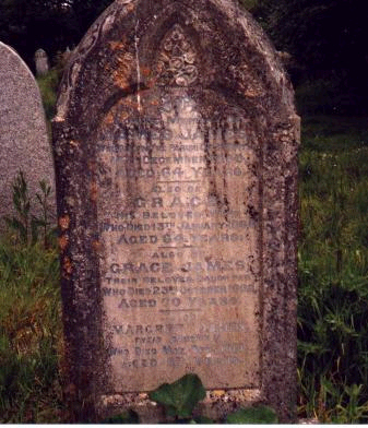 (In 1841 James is a Miner aged 45. Grace is aged 35. The family are living in Greenland, St Erth) (In 1851 James is aged 48 and a Miner and occupier of 14 acres. Grace is aged 46. The family are living in Greenland, St Erth) (In 1861James is aged 58 and a Copper & Tin Miner. Grace is aged 59. The family are living in Nomansland, Gwinear) (James died of a diseased heart on 14 DEC 1865. Buried in Breage). (Grace died of natural decay on 13 JAN 1866. Buried in Breage) |