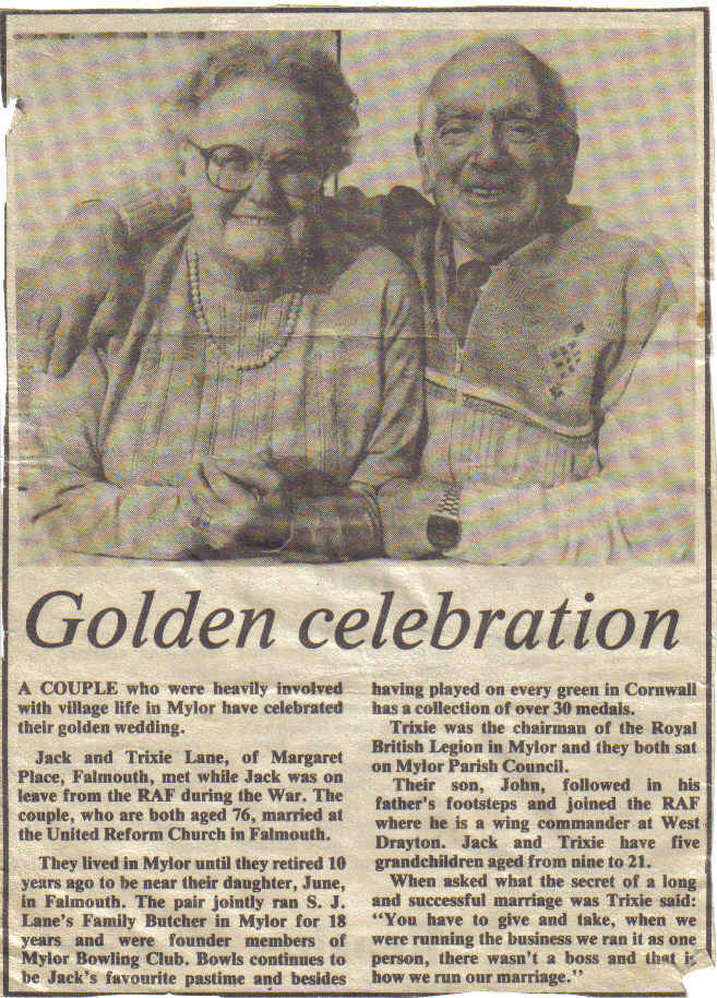 | Samuel Edward John Lane (known as John) | 9 JAN 1944 at Vernon Villas, St Blazey Gate | Married Frances in 1966 |