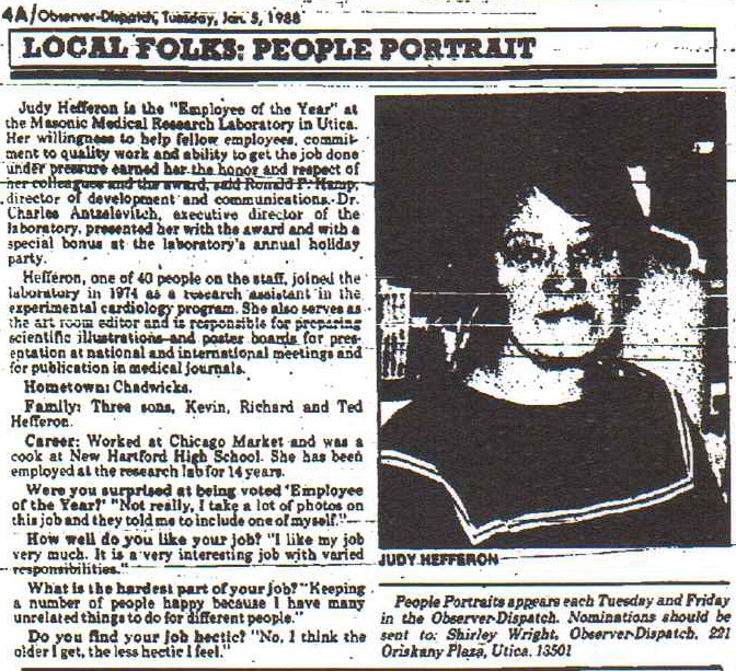 | Theodore J. Hefferon | 2 APR 1966 | Married Kim. Lives in New Hartford |