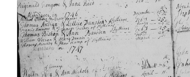 | Mary Bowndy | 13 JUL 1747 in Stithians [Source = opc database] |